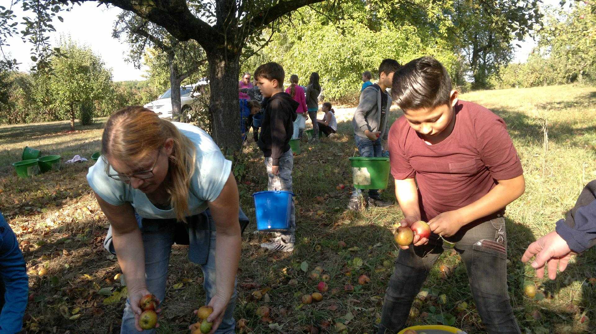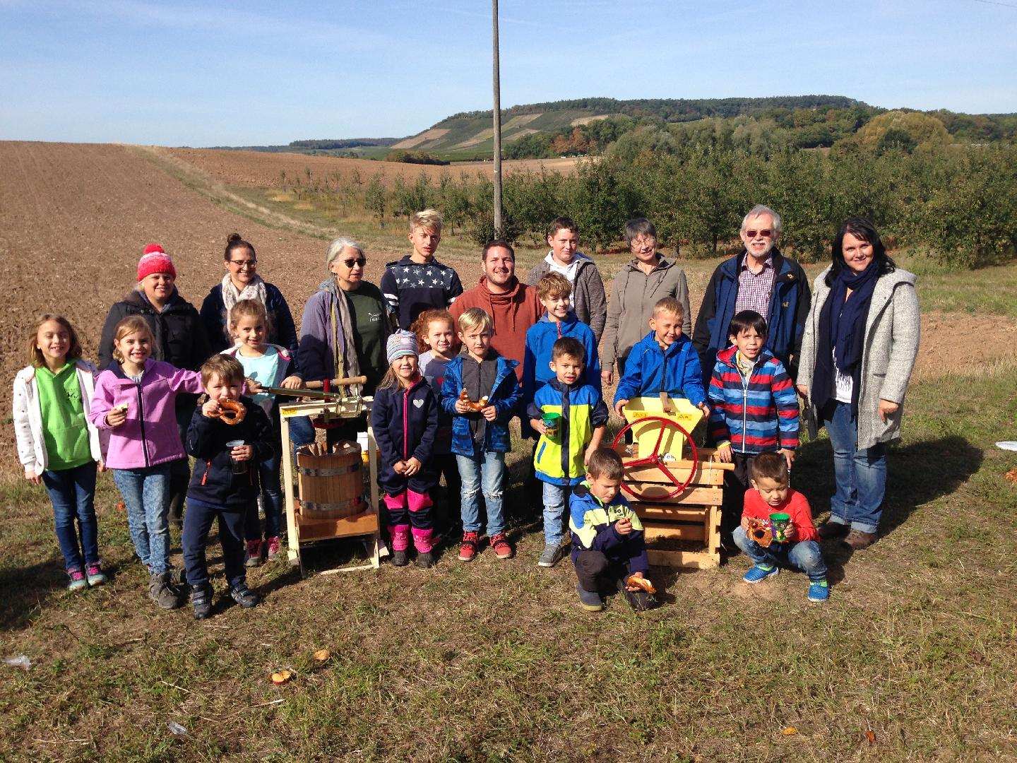 Die Klasse 1 presst Apfelsaft mit dem NABU